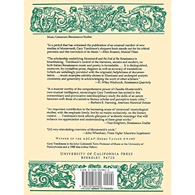 Review "In a manner worthy of the comprehensive power of Claudio Monteverdi's own musical intelligence, musicologist Gary Tomlinson has united in this extraordinary and provocative interdisciplinary study the skills of an astute historian with those of a sensitive literary scholar and perceptive music critic."--Barbara R. Hanning, "American Historical Review Read more About the Author Gary Tomlinson is Professor of Music at the University of Pennsylvania and a 1988 MacArthur Fellow. Read more