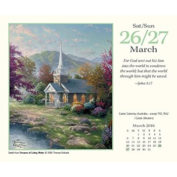 I found myself looking at all 365 days before 2015 even begins. I never purchased one with Scripture before and this really does make the calendar very special for 2015. I bought several as gifts. I love the combination of Kinkade's masterpieces with a corresponding Scripture reading. Now I can enjoy a cup of coffee in the morning, gaze at a beautiful painting and read an inspirational bible quote. Great way to start the day!